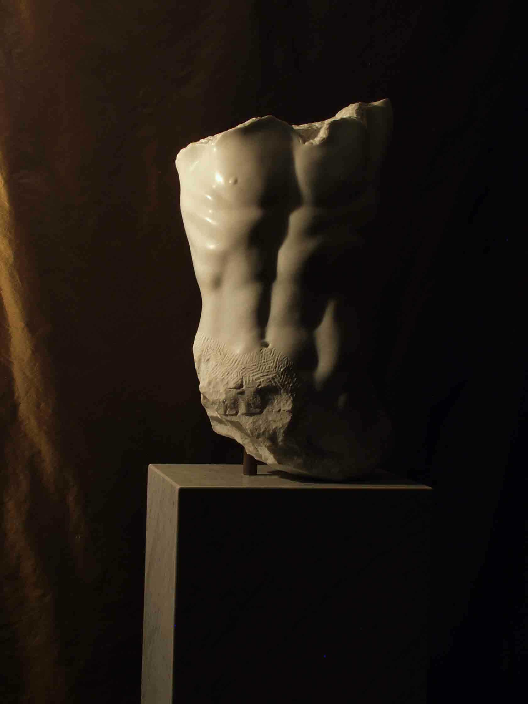 The figure has been reduced to render it as simle as possible. Reminiscent of a fragment of history as well as anatomy, the marble particularly favoured the subtractive process. The work suggests the discovery of the inner mystery held within an abstract form created from a representation of man himself. This work was among the first of the fragmented, or partial figures, that the artist created in his Paris studio and demonstrates the influence of classical sculpture found in that city.